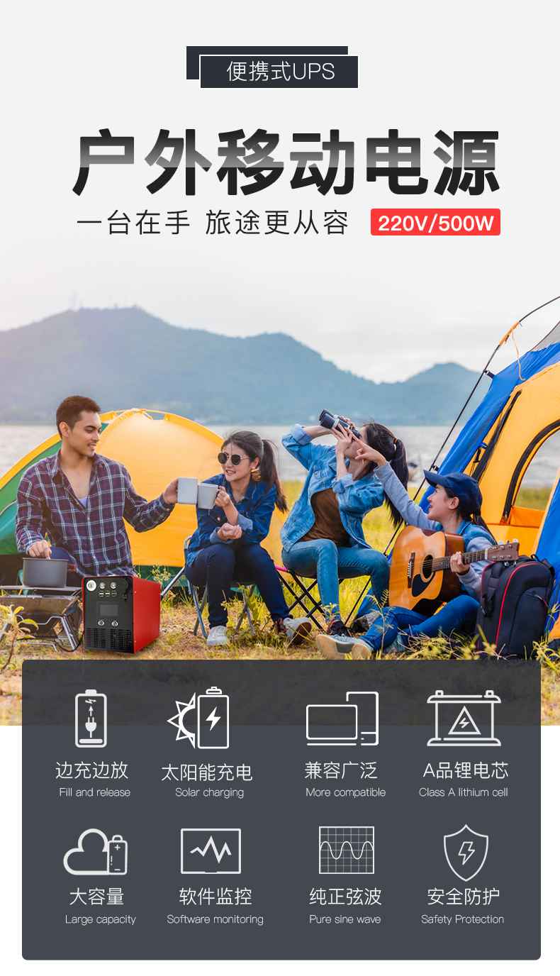im电竞户外电源220V笔记本电脑房车户外摆摊露营停电备用应急移动便携500W大功率锂电池
