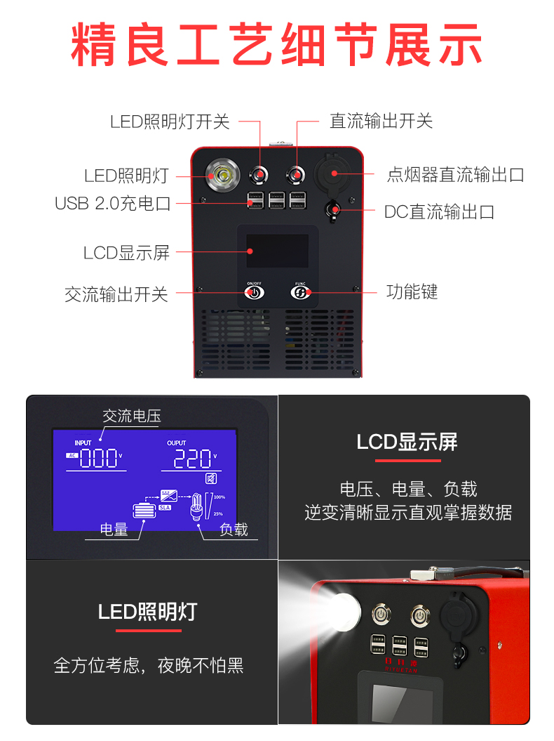 简单介绍:im电竞户外电源220V笔记本电脑房车户外摆摊露营停电备用应急移动便携大功率锂电池,是移动电源与ups的结合体,实现边充边放功能,多U口输出,带LED手电及屏幕数...