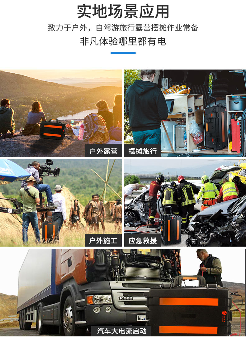 大容量大功率纯正弦波输出,支持太阳能、汽车充电,超长续航AC/DC/USB多种充电模式,直播电脑大容量电池超长续航。适用于电脑、无人机、房车、车载冰箱、户外露营,夜市摆摊等