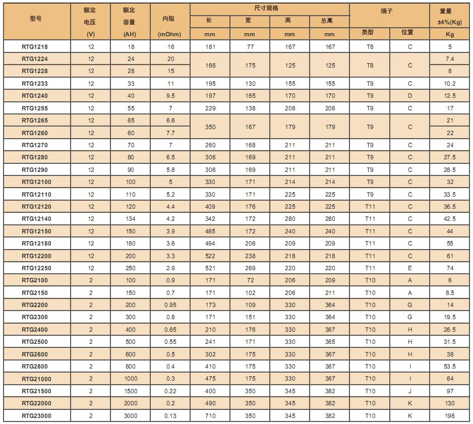 简单介绍:深循环胶体蓄电池RTG(6GFMJ)系列产品特点:不需要维护,无需加水补液 ;可靠性高、使用寿命长;重量、体积比能量高。...