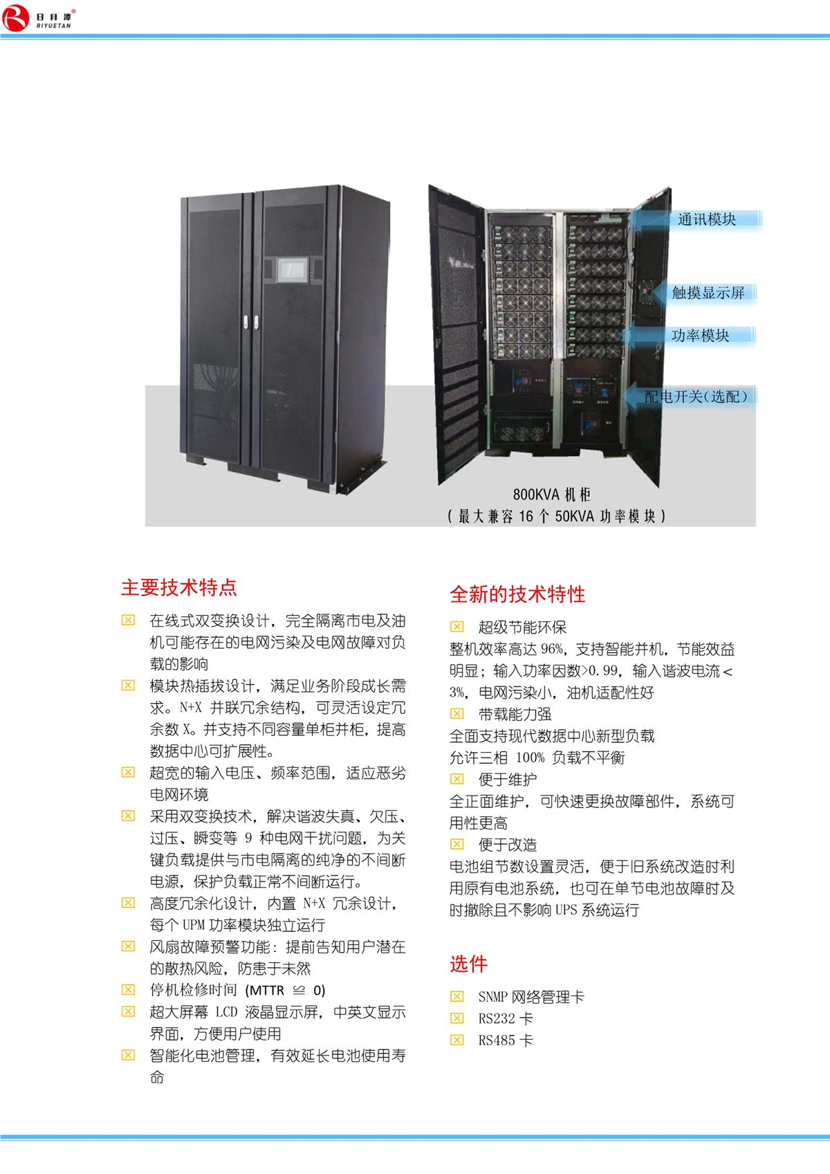 简单介绍:兼容 40/50KVA功率模块 新一代模块化UPS,采用全数字化控制技术,为数据中心提供安全、可靠、稳定、环保的不间断电源。 单模块容量:40KVA/50KVA单柜系统容量:200-800KVA输入电压范围:285V-475V输入频率范围:40-70Hz输出电压:380VAC 拓扑结构:双变换在线...