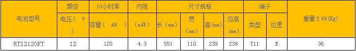 前置端子RT12120FT铅酸蓄电池不间断EPS/UPS系列: