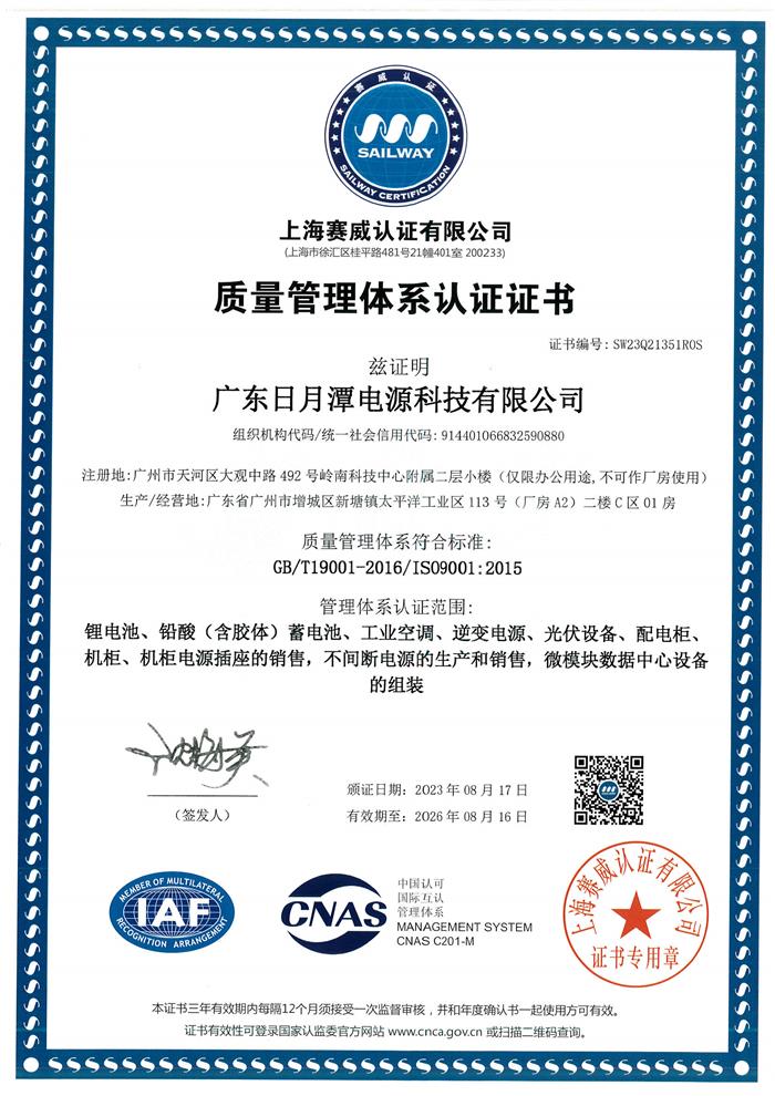 质量管理体系认证证书